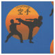 Two Karate Fighters With Rising Sun and word Karate in Japanese language in orange and black colors