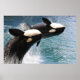 Two killer whales (Orcinus orca - Cetacean - Mammal) jumping out of blue water