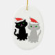 Two cats in Christmas hats on an ornament.