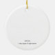 Lightweight, smooth, pure white ornament with nice sheen. Perfect size to be seen from across the room ... and to attract closer inspection! Price was great for ordering enough for the whole family! Clear, bold black design just as requested. Matches the order exactly. Just so nice!