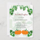 Halloween Pumpkins themed baby shower invitation featuring two warm orange and green watercolor painted pumpkins design.