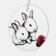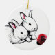 Two Little White Rabbits Ceramic Ornament