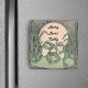 Personalize this magnet with your names or any text you wish. This vintage illustration has two cute green and white frogs arguing on a green lillly pad. A large white moon is behind them and they are surrounded by green plants. The background is a black and white design. See my store Art by MAR for matching products with this design.