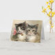 Vintage illustration of two cute little Victorian kittens with pink ribbon and bell.