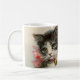 Vintage illustration of two cute little Victorian kittens with pink ribbon and bell.