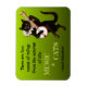 A famous quote by Albert Schweitzer - "There are two means of refuge from the miseries of life - music and cats". A frisky black cat in a white renaissance collar plays the banjo on a gradient green background. Great for kitchen, play room, magnetic board or anywhere you like to stick your magnets.