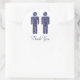 Two silhouettes of men in blue faux glitter with text that reads Thank You.