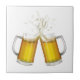 Two mugs with a light beer. ceramic tile