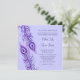 Two intricately illustrated peacock feathers highlight this invitation. It is shown on the basic paper; however, I recommend the shimmer of the metallic ice paper to bring out the iridescence of the feathers.