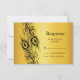 Two intricate feathers decorate this RSVP on an illustrated gold background. This is the coordinating RSVP for the Two of a Kind Peacock Feathers wedding invitation.