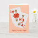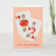 A delightful Valentine's Day greeting card featuring a salmon pink background with a Queen of Hearts playing cards illustration.