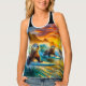 Women's All-Over Print Racerback Tank Top, White Piping, S