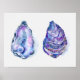 Two oyster shells with pearl print by the watercolor artist Cheng Jing. The color scheme is purple and blue.