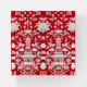 Stylized Asian botanicals and architectural motifs of two pagodas in red-and-white create a striking accent piece for home and office decor.