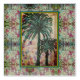 Two lovely green palm trees are presented herein and mounted on a pretty digital design, and are created as mixed media artwork.