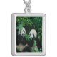 Two pandas eating bamboo together, Wolong Silver Plated Necklace
