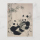 With a single black ink, painter depicts pandas by a full range of hues. Bamboo is painted tall and straight, with leaves swaying and singing to the wind. Chubby and cute, two giant pandas here are outlined by pale color. Added with dark ink on their eyes, ears, and legs, the subjects characterize as plumpy and lovely. Twoness always has a propitious meaning in Chinese culture; a pair of chubby pandas further stands for reunions, harmony and happiness. Plants also have good meanings, such as bamboos suggesting intergrity. Depicting with these two fortunate objects, this picture thus is full of auspicious wishes.