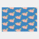 A set of 3 flat sheets wrapping paper with a pattern of two delicious peaches . One sheet is blue , one is pink and one is a light peach color . Ideal for baby shower or birthdays .
