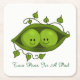 A green pea pod surrounded by green leaves. Inside the pod snuggled up together are two adorable peas with the cutest faces. Below is a text template reading Two peas in a pod, which you can use as it is or change to your own text.