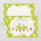 Cute twin babies, boy and girl, in a pea pod, with bunting banner and polka-dot print background thank you card.