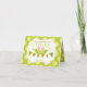 Cute twin babies in a pea pod with baby shower bunting banner and green polka-dot print background thank you note card.
