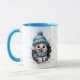 Two Peeking Snowmen In Blue Christmas Coffee Mug