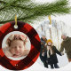 Two Photo Christmas Painted Red Black Plaid Ceramic Ornament