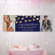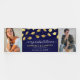 Celebrate graduation with a unique, modern flare. Our joint graduation party banner boasts a sophisticated navy blue backdrop that can be customized to any color, featuring two photos of the proud graduates. It's adorned with chic faux gold foil mortarboard caps cascading down the banner, alongside an easy-to-personalize text template. This is not just a banner - it's a keepsake of a memorable milestone.