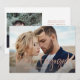 Plain white envelopes are included with paper invitations and will come to fit the invitation size you select. If you don’t need the envelopes, you may choose to not receive them by selecting the dropdown below "Envelopes" and choosing "None." If you’d like to have a design on your envelopes, you can browse all of these available envelopes to find the design that complements your Two Photo Faux Rose Gold Script Engagement Party Invitation.