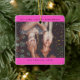 eyecatching neon fuchsia pink Two Photo Minimalist Best Friend Snowfall Christmas Holiday Keepsake Ceramic Ornament featuring two personalized pictures in any size of your beautiful memories into a snowfall holiday frame and custom modern sans serif font text. Show your love to your friend, girlfriend, parents, and any special person for you!