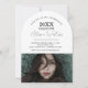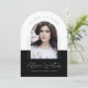 Let your amazing senior photos take center stage in this graduation announcement / graduation party invitation. One photo is featured on each side, with gorgeous arched details, modern typography and a chic color palette.