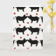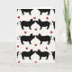 This card shows a repeating pattern of black pig shapes on a bright white background. Most of the pigs are in pairs, facing each other nose-to-nose like they’re about to kiss or cuddle, which feels sweet and romantic 💘. Small red hearts are scattered around them, adding pops of color and making the love theme clear ❤️. Each pig has tiny white details in the eyes and on the snout, which makes their faces look lively and a little cheeky. Their curly tails add a cute touch and keep the pattern feeling light and friendly. There isn’t any background scene or shading, so the simple black-and-white look stands out and keeps your focus on the pairs and the hearts. There’s no text on the card, so the design does all the talking without any words. It’s a fun way to share Valentine’s Day sentiments with someone you care about.