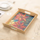 Two Poinsettia Blossoms Stained Glass Style Serving Tray