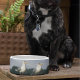 This is a heavy, durable bowl decorated with Tibbies of many colors, the perfect size for hungry/thirsty Tibs. The design is interesting and printing clear.