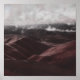 Soft and undulating, with smooth ridges and valleys that create a gentle rhythm across the scene of hills tinted in muted, earthy tones—deep browns and reddish hues. Above, the sky is overcast with thick, gray clouds, adding to the dramatic and slightly mysterious ambiance.