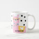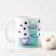 Two pretty Llama ladies – one pink and one sea green, both decked out in jewelry and glasses and ready for the day! Customized with your name on the front and back of the mug. Make it uniquely yours – just click “personalize” and add your information. Great gift for co-workers, family, and friends!