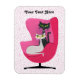 This flexible magnet has two pretty mid century style cats one white and one black sitting together in a bright pink chair wearing diamond collars on white with hot pink polka dots.