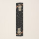 This chiffon scarf is black covered with white stars and a pretty light brown owl wearing a blue necklace sitting on a tree branch at each end.