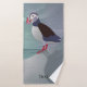 Two Puffins Design Bath Towel Set with customizable personalization or other text. NOTE: if you want NO TEXT, you must delete the sample text and leave the personalization box blank.