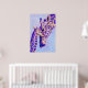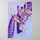 An affectionate mother and baby giraffe in shades of purple and blue.