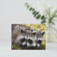This postcard features a photo of two raccoons looking very cute!