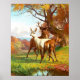 Two Red And White Deer In The Forest Poster
