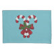 Two Red And White Festive Candy Canes On Blue Pillow Case