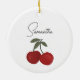 Two Red Cherries Illustration | Cute Fruit Art Ceramic Ornament
