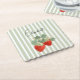 Two Red Strawberries Stripes & Flowers | Fruit Paper Coaster