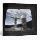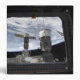 Two Russian spacecraft docked with the International Space Station, as seen from Space Shuttle Discovery's flight deck window featured with STS-131.