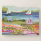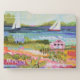Two Sailboats and Cottage I by Karen Fields. Bright, fun scene with flowers, trees, a cottage, and sailboats out on the water.