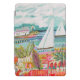 Two Sailboats and Cottage II by Karen Fields. Features two sailboats floating in the water surrounded by colorful flowers and cottages.