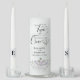 This stunning wedding unity candle set will make a wonderful addition to any wedding ceremony. It features an elegant boho chic design with a hand painted watercolor cluster of eucalyptus leaves and lavender flowers in shades of sage green and pale purple. The quote reads "and the two shall become one" in fancy calligraphy word art. There is space for the names of the couple and wedding date with the couple's initials on each of the tapers. Wonderful way to express your love during your wedding ceremony, and a beautiful keepsake for years to come.