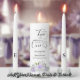 This stunning wedding unity candle set will make a wonderful addition to any wedding ceremony. It features an elegant boho chic design with a cluster of hand painted watercolor roses and blossoms in shades of dusty purple, lilac, and lavender. The quote reads "and the two shall become one" in fancy calligraphy word art. There is space for the names of the couple and wedding date with the couple's initials on each of the tapers. Wonderful way to express your love during your wedding ceremony, and a beautiful keepsake for years to come.